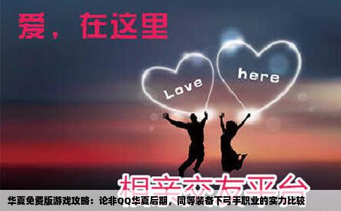 在华夏免费版这款游戏中,弓手职业一直以其远程输出和灵活的走位技巧受到玩家们的喜爱。面对“华夏免费版是否等同于QQ华夏后期,以及哪种弓手更厉害”的问题,我们需从多个角度进行深入分析。