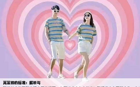 从字面意义上看,“高”通常指的是个人修养高、教育程度高;“富”则是指经济状况良好,具备较高的经济实力;“帅”则指的是外貌或气质上的吸引力。但这个定义是相对模糊的,因为不同的人对这三个字的解读可能会有所不同。